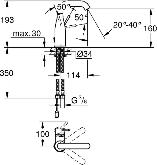 Grohe Essence New Смеситель для раковины высокий, с д/к, высота излива 16 см, цвет: хром 23480001