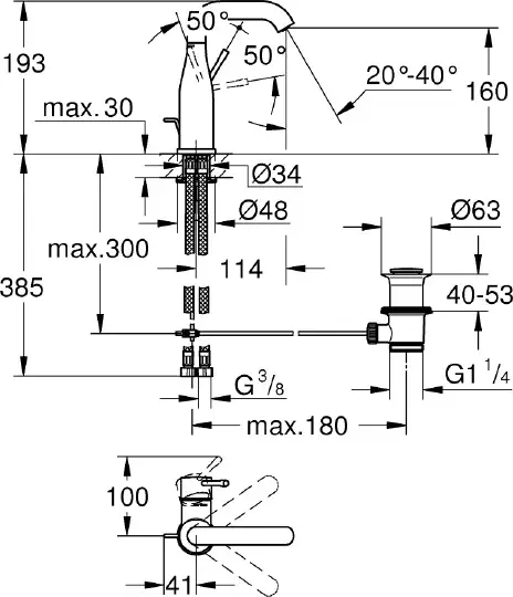 Grohe Essence New Смеситель для раковины высокий, с д/к, высота излива 16 см, цвет: суперсталь 23462DC1
