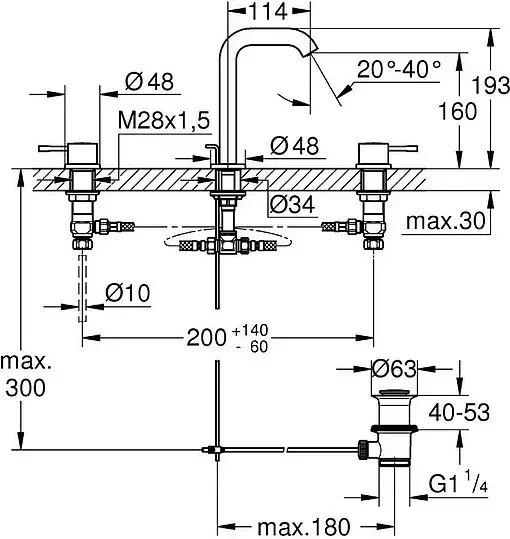 Grohe Essence New Смеситель для раковины высокий вентильный, с д/к, высота излива 16 см, цвет: хром 20296001