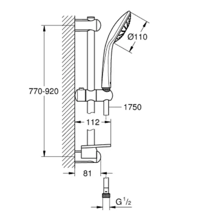 Grohe Euphoria 110 Mono Душевой гарнитур: душевая лейка 1 вид струи, штанга, мыльница, цвет: хром 27267001