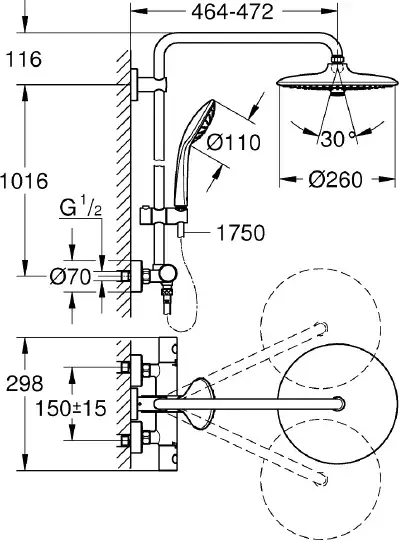 Grohe Euphoria Душевая стойка с верхним душем, цвет: хром 27475002