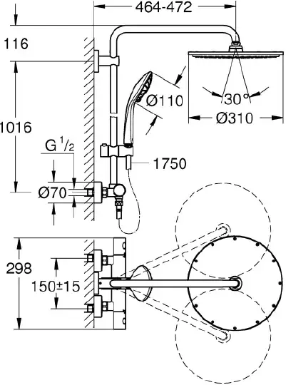 Grohe Euphoria Душевая стойка с верхним душем, цвет: хром 27475002