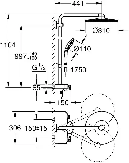 Grohe Euphoria SmartControl Душевая стойка 30,6х58хh113,6 см, цвет: хром 26509000