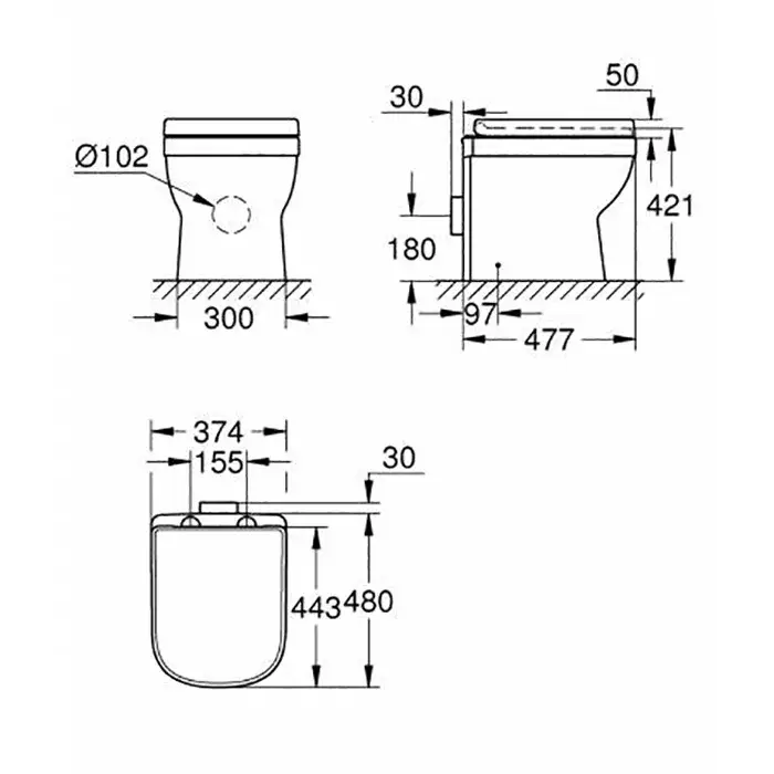 Grohe Euro Ceramic Унитаз 48x37 см, универсальный слив, приставной, цвет: хром 39555000