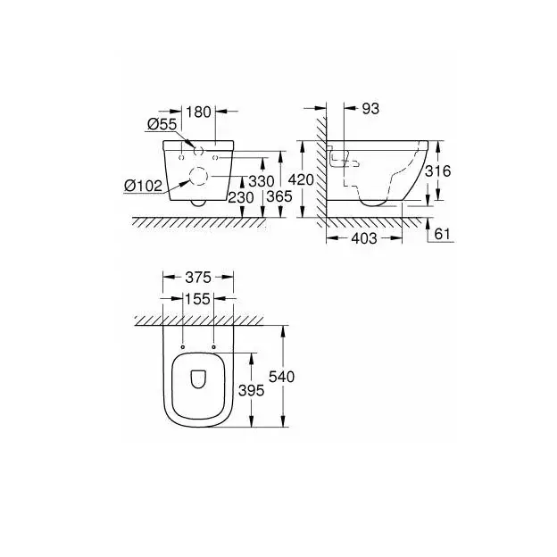Grohe Euro Ceramic Унитаз 54x37 см, слив в стену, подвесной, цвет: хром 39554000