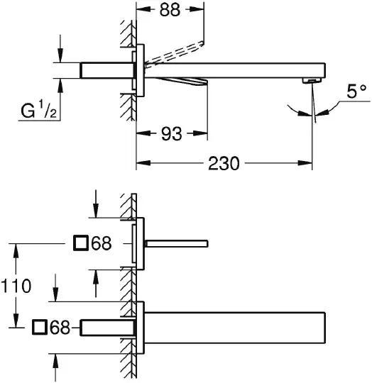 Grohe Eurocube Joy Смеситель для раковины встраиваемый, длина излива 23 см, цвет: хром 19998000