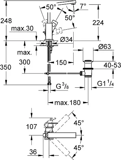 Grohe Eurocube Смеситель для раковины, излив 15 см, с повор изливом, с д/к, цвет: хром 23135000