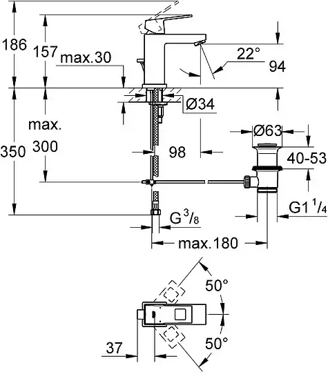 Grohe Eurocube Смеситель для раковины, с д/к, длина излива 9,8 см, цвет: хром 2312700E