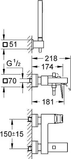 Grohe Eurocube Смеситель для ванны накладной, с ручным душем, цвет: хром 23141000