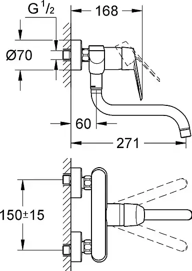 Grohe Eurodisc Cosmopolitan Излив настенный для ванны 17 см, цвет: хром глянцевый 13279002