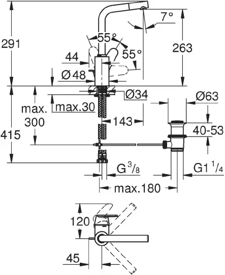 Grohe Eurodisc Cosmopolitan Смеситель для раковины высокий, с д/к, высота излива 26,3 см, цвет: хром 23054003