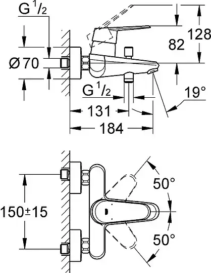 Grohe Eurodisc Cosmopolitan Излив настенный для ванны 17 см, цвет: хром глянцевый 13279002
