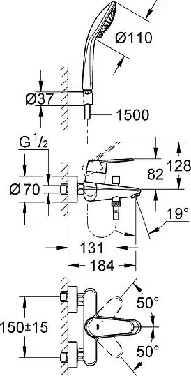 Grohe Eurodisc Cosmopolitan Излив настенный для ванны 17 см, цвет: хром глянцевый 13279002