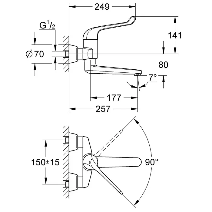 Grohe Euroeco Special Смеситель для раковины, рычаг 17 см, вынос 34,1 см, цвет: хром 32775000
