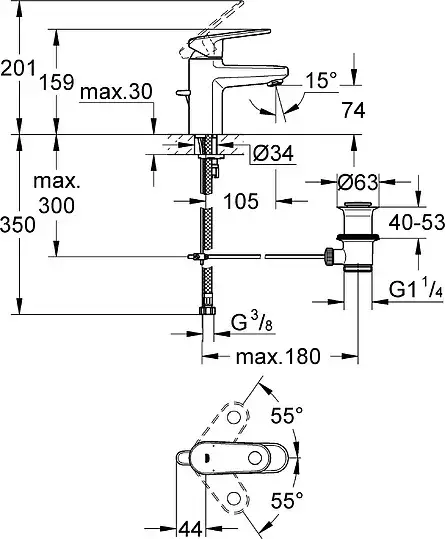 Grohe Europlus II Смеситель для раковины, с д/к, длина излива 10,5 см, цвет: хром 32612002