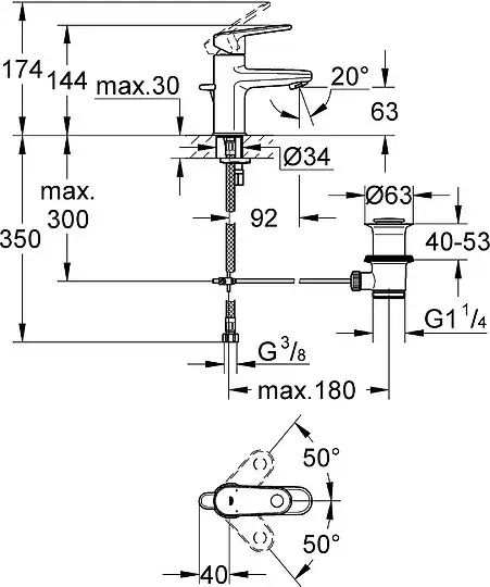 Grohe Europlus II Смеситель для раковины, с д/к, длина излива 9,2 см, цвет: хром 33156002