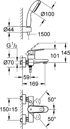 Grohe Europlus II Смеситель для ванны, накладной, с ручным душем, цвет: хром 33547002