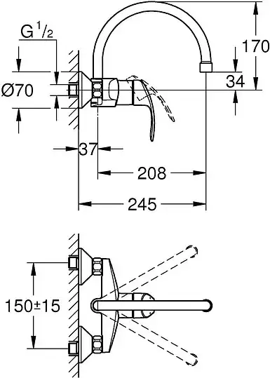Grohe Eurosmart Смеситель для кухни на 2 отверстия, излив 21,6 см, цвет: хром 31391003