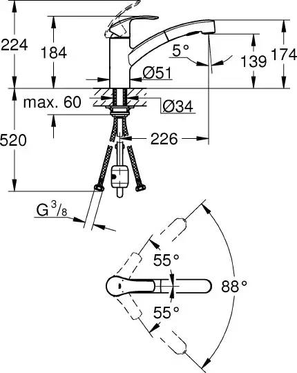 Grohe Eurosmart Смеситель для кухни на 2 отверстия, излив 21,6 см, цвет: хром 31391003