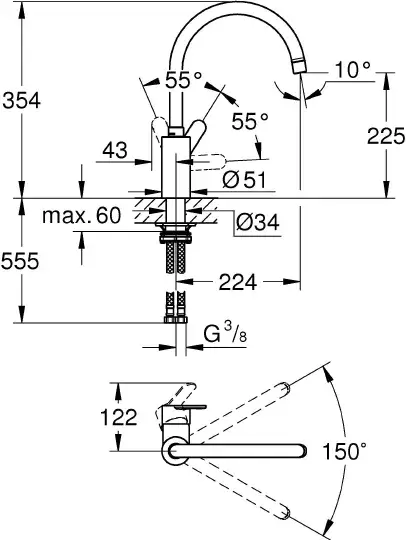 Grohe Eurostyle Cosmopolitan Смеситель для кухни, с поворотным изливом, цвет: хром 33975004