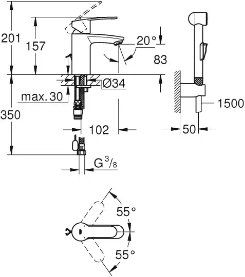 Grohe Eurostyle Cosmopolitan Смеситель для раковины, с гигиеническим душем, цвет: хром 23549000