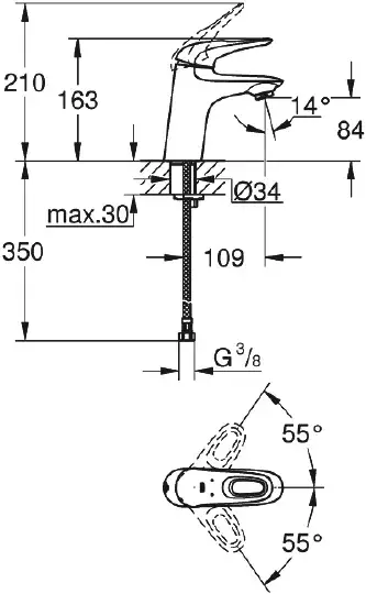 Grohe Eurostyle Смеситель для раковины, без д/к, длина излива 10,9 см, цвет: хром 23567003
