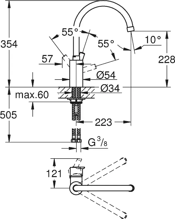 Высота излива, см