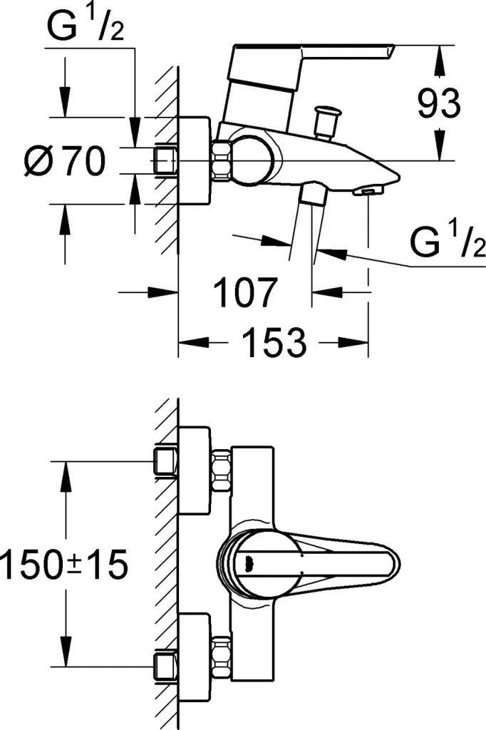 Grohe Feel Смеситель для ванны с душем на 2 отверстия, излив 15,3 см, цвет: хром 32269000