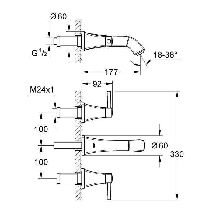 Grohe Grandera Встраиваемая часть смесителя для раковины на 2 отверстия 23319000