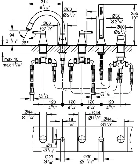 Grohe Grandera Смеситель на борт ванны, с ручным душем, 5 отверстий, цвет: хром/золото 19919IG0