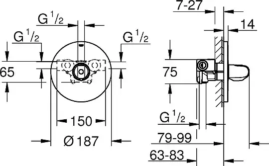Grohe Grohtherm 1000 New Термостатический смеситель для душа, с внутренней частью, цвет: хром 34573000