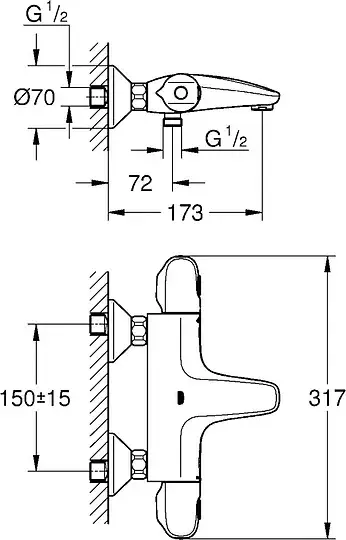 Grohe Grohtherm 1000 New Термостатический смеситель для ванны, цвет: хром 34155003