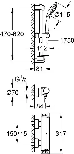 Душевая лейка, Душевая штанга, Смеситель, Шланг для душа