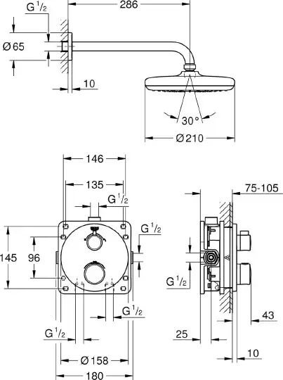 Grohe Grohtherm Душевой комплект, душ 31 см, шланг 125 см, цвет: хром 34731000