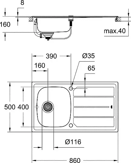 Grohe K200 Кухонная мойка из нержавеющей стали 86x16 см, с крылом, цвет: нержавеющая сталь 31552SD0