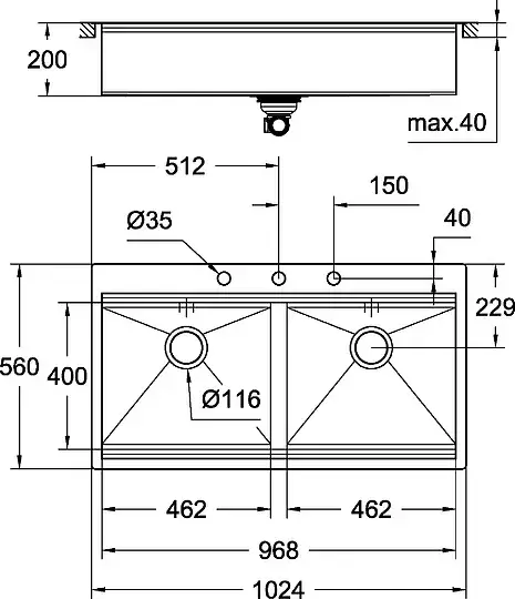 Grohe K800 Кухонная мойка двойная из нержавеющей стали 102,4x20 см, цвет: нержавеющая сталь 31585SD0