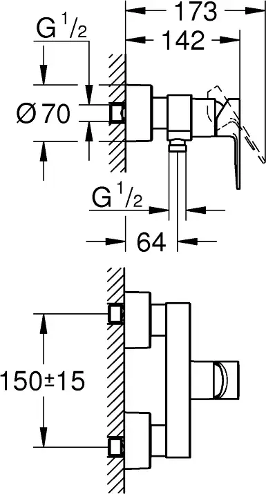 Grohe Lineare New Смеситель для душа накладной, с выходом для шланга, цвет: темный графит, матовый 33865AL1