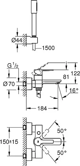 Grohe Lineare New Смеситель для ванны с ручным душем, держателем и шлангом 150см, цвет: хром 33850001