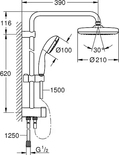 Grohe New Tempesta System Душевая стойка 21х50хh73,6 см, цвет: хром 26381001