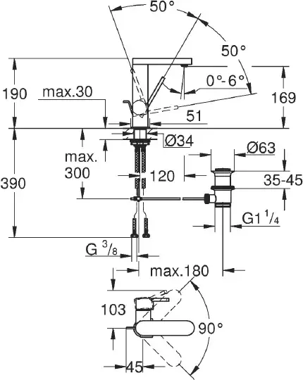 Grohe Plus Смеситель для раковины высокий поворотный, с д/к, высота излива 16,9 см, цвет: хром 23871003
