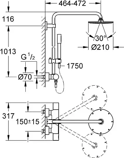 Grohe Rainshower F-Series Монтажный набор для потолочного душа AquaSymphony, цвет: хром 26376001