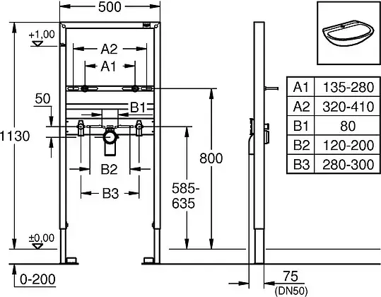 Grohe Rapid SL Инсталляция для раковины 113h см с креплением 38554001