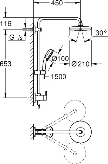 Grohe Tempesta Retro-Fit Душевая стойка: переключатель, штанга, ручной и верхний душ, цвет: хром 26190001