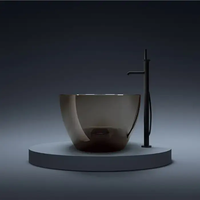 GRUPPO TREESSE CAMELIA Ванна отдельностоящая 1800х850х500 мм.,без перелива, объем 300л, сифон, цвет и материал SMOKEY TRANSPARENT RESIN