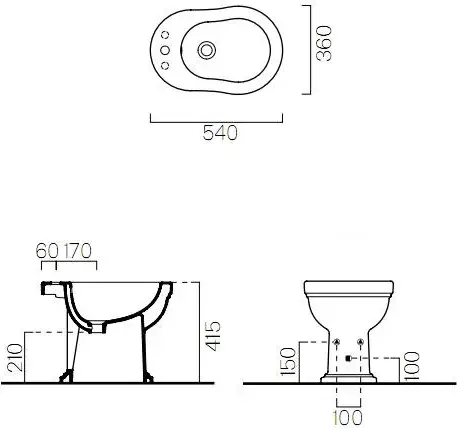 GSI Classic Биде напольное, 1 отверстие под смеситель, перелив, без крепежа, цвет: белый глянцевый 8762111