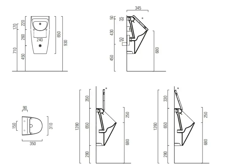 GSI Community Писсуар подвесной безободковый с отверстиями для крышки, цвет: ardesia opaco 769626