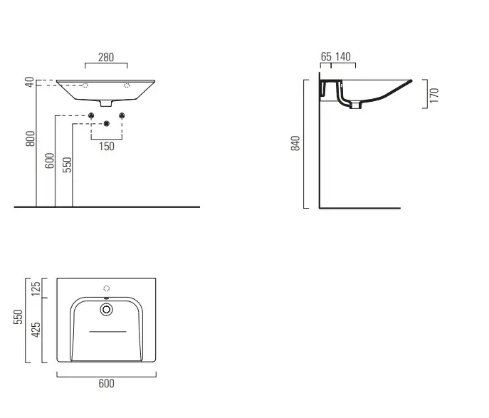 GSI Community Раковина подвесная 60x55 см, 1 отверстие, без перелива, без д/к, цвет: белый глянцевый 7634011