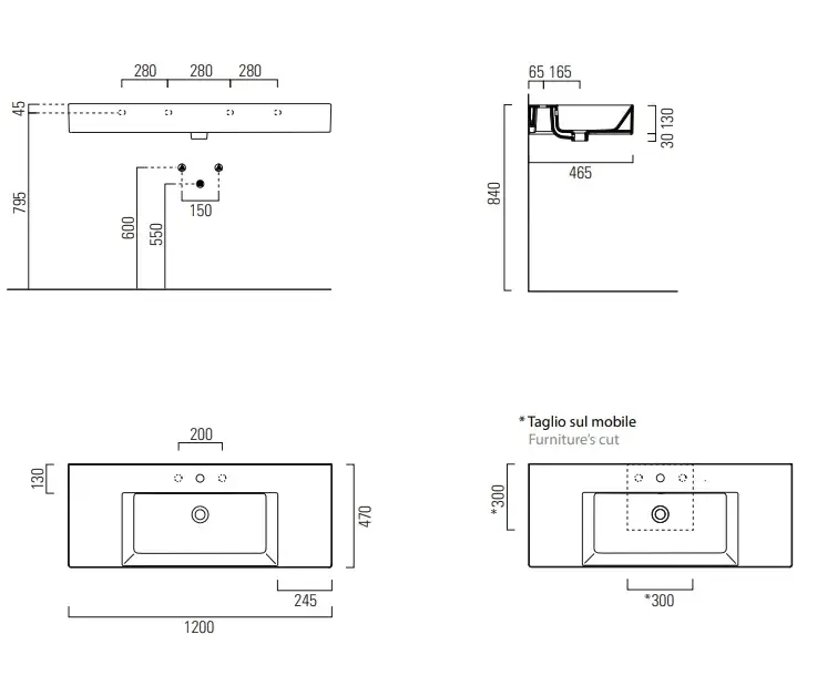 GSI Kube X Раковина подвесная/накладная 120x47 см, 1 отверстие, с переливом, цвет: белый глянцевый 9452111