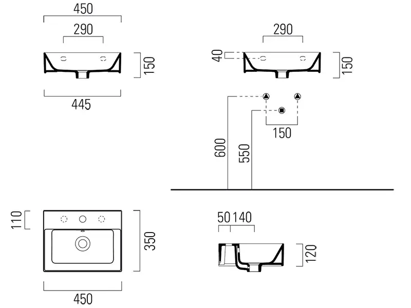 GSI Kube X Раковина подвесная/накладная 45x35 см, 1 отверстие, с переливом, цвет: белый матовый 9485109