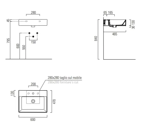 GSI Kube X Раковина встраиваемая сверху 80x37 см, с переливом, без д/к, цвет: белый глянцевый 895411
